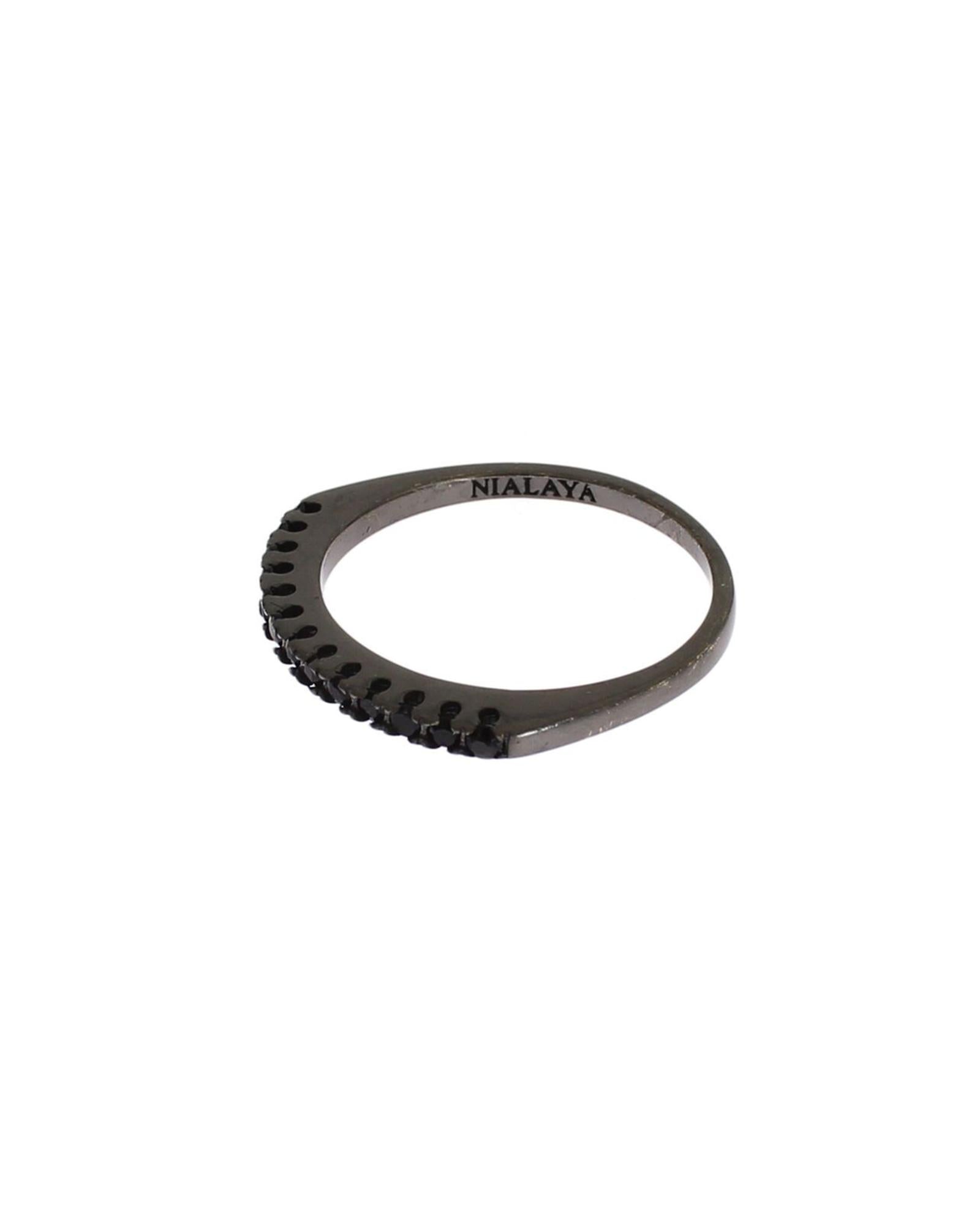 100% Authentic NIALAYA Sterling Silver Ring with Black CZ Crystals 56 EU Women