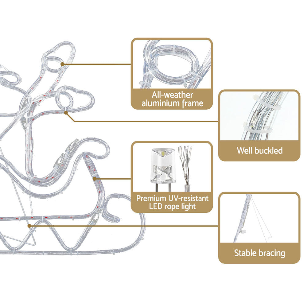 1X Christmas Lights Reindeer Sleigh 806 LED Decorations Jingle Jollys