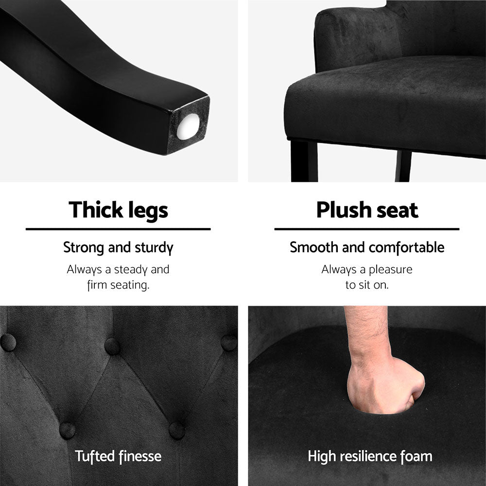 2x Artiss Dining Chairs Velvet French Provincial Armchair Black