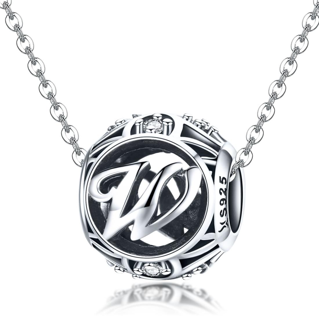 • 1 x 925 Sterling Silver 26 English Letter Beads For Diy Bracelets Necklaces Style - W