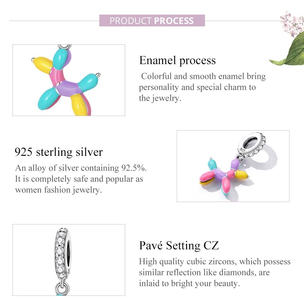 925 Sterling Silver Balloon Puppy Pendant For Bracelets & Necklaces