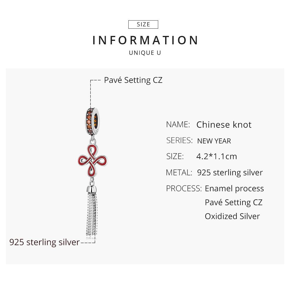 • 1 x 925 Sterling Silver Chinese Knot Pendant For Diy Bracelets Necklaces