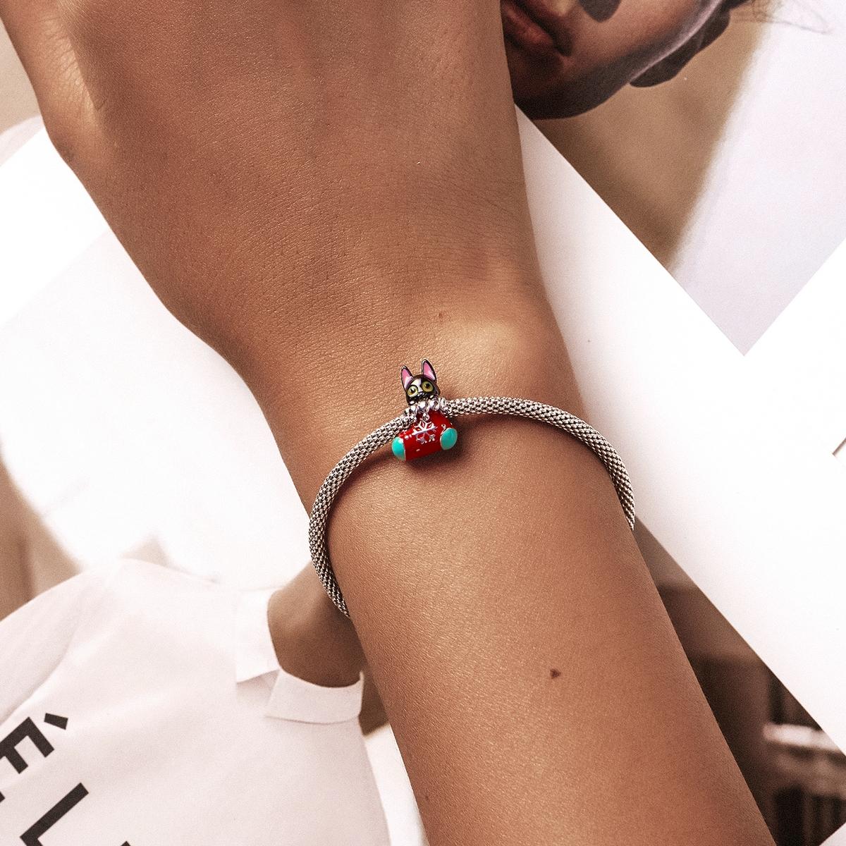 925 Sterling Silver Christmas Sock Cat Beads For Diy Bracelets & Necklaces