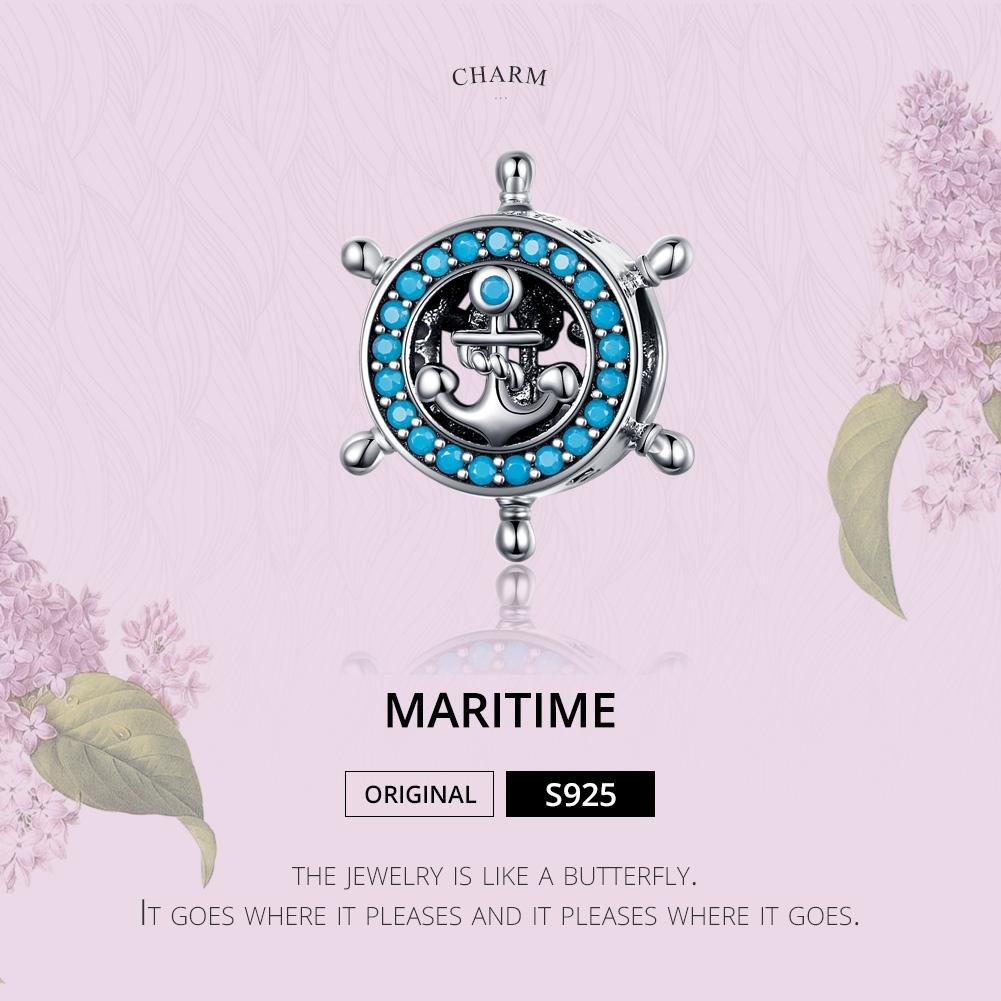 925 Sterling Silver Diy Boat Rudder Bracelet & Blue Beads