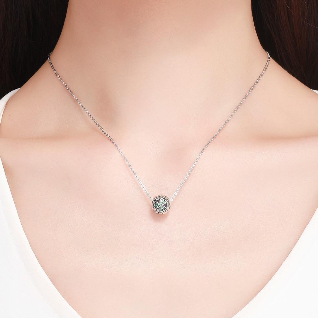 925 Sterling Silver Green Clover Bead For Diy Bracelets