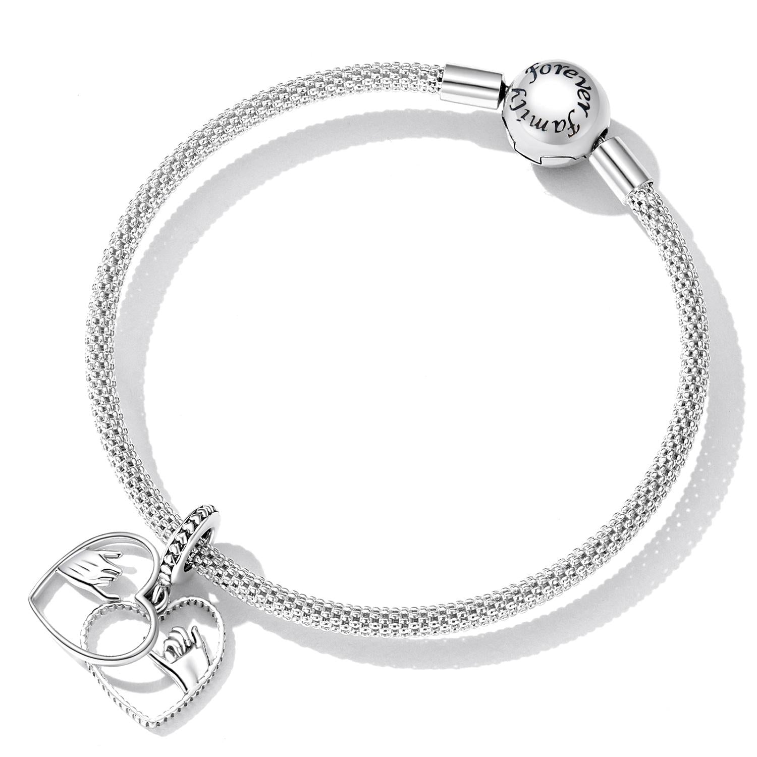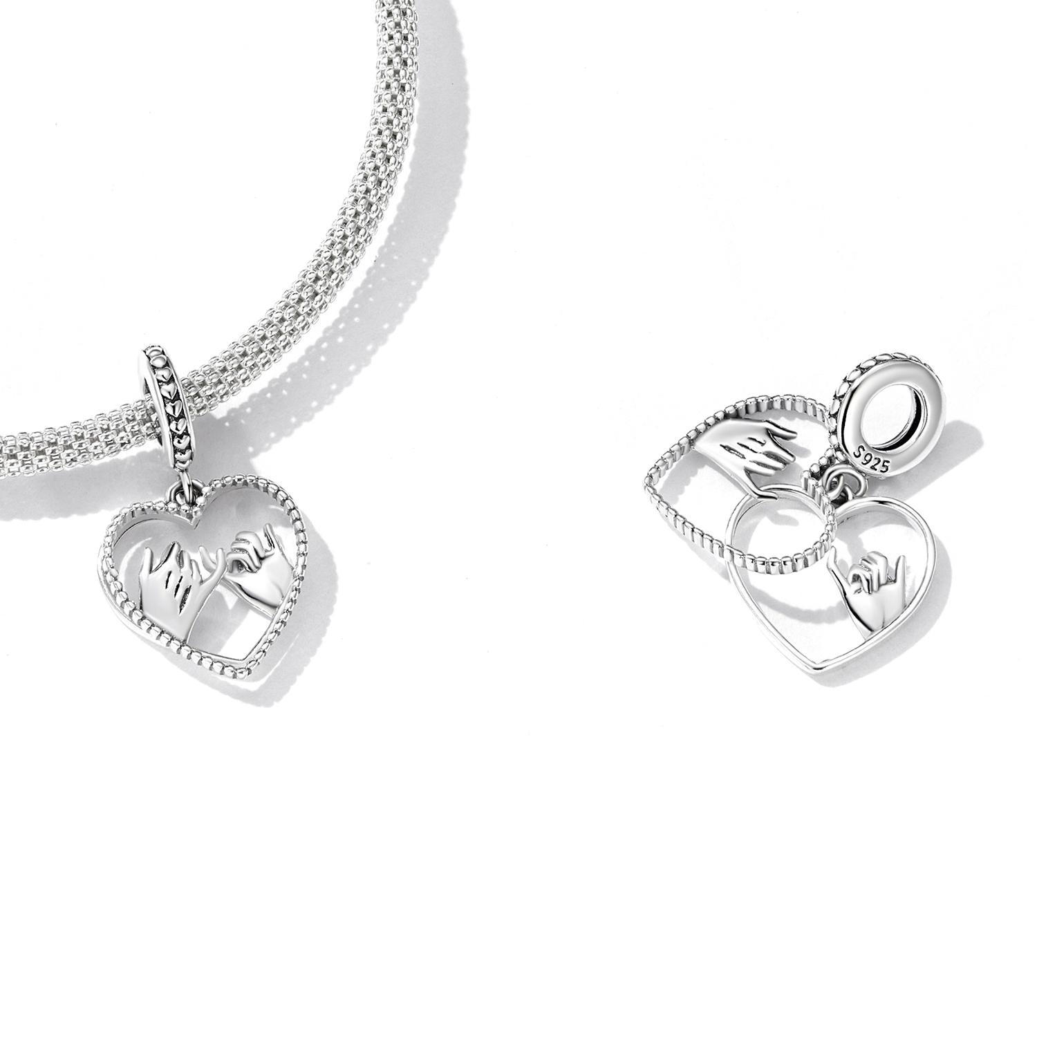925 Sterling Silver Hand In Hand Heart Pendant For Diy Bracelets & Necklaces
