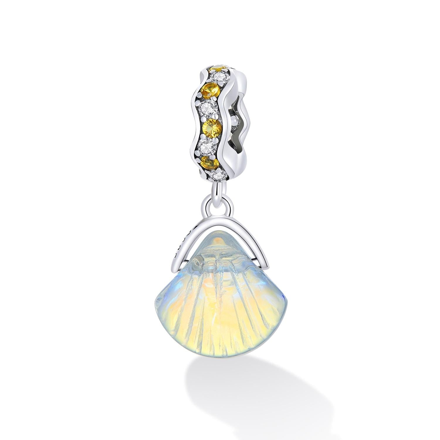 925 Sterling Silver Iridescent Shell Pendant For Diy Bracelet Or Necklace