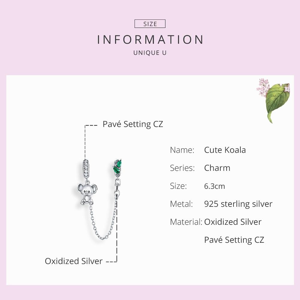 925 Sterling Silver Koala Safety Chain For Bracelets & Necklaces