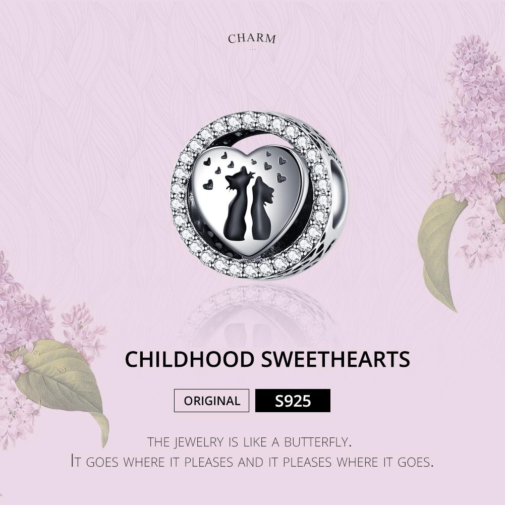 925 Sterling Silver Love Cat Heart Beads For Diy Bracelets & Necklaces
