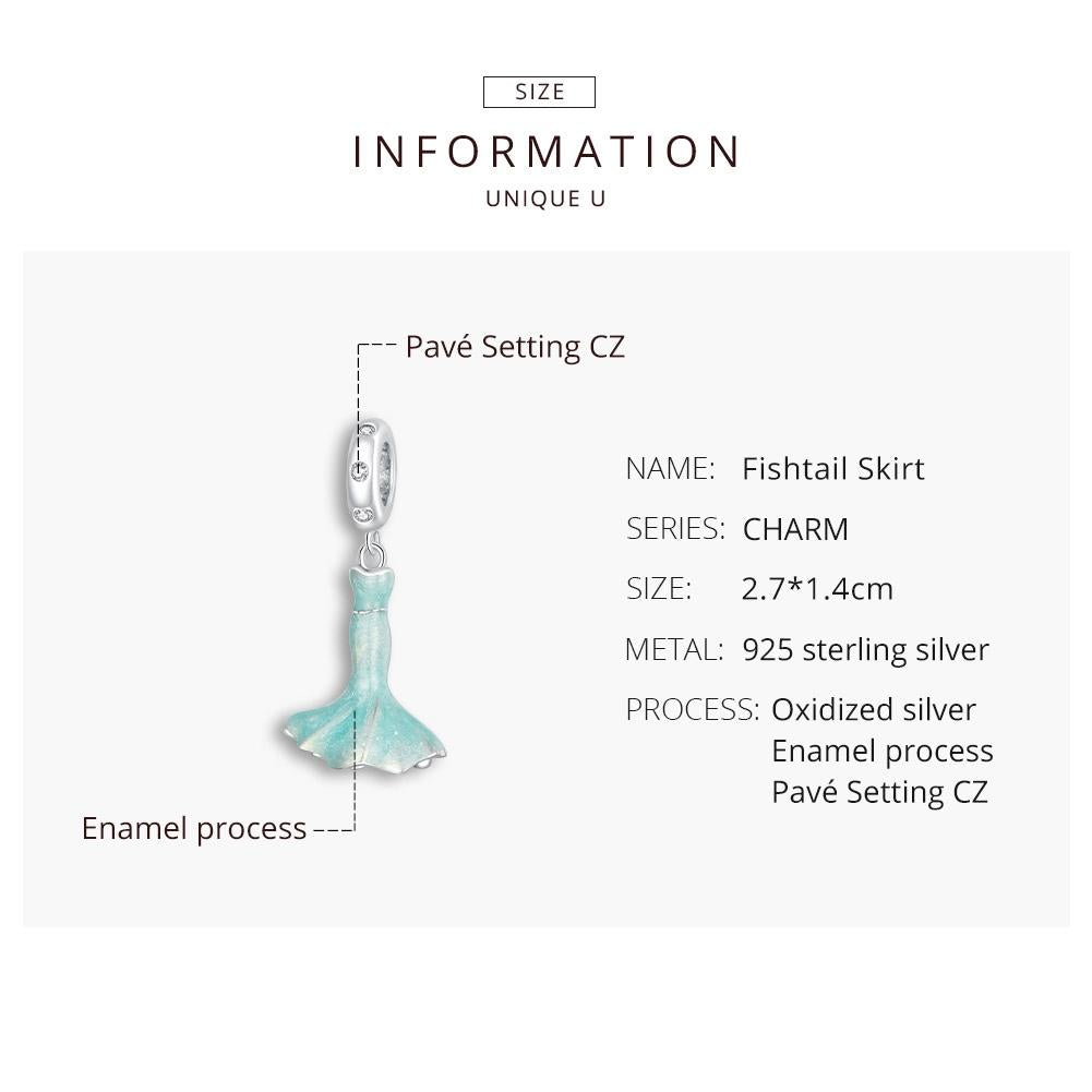 • 1 x 925 Sterling Silver Mermaid Skirt Pendant For Diy Bracelet Or Necklace
