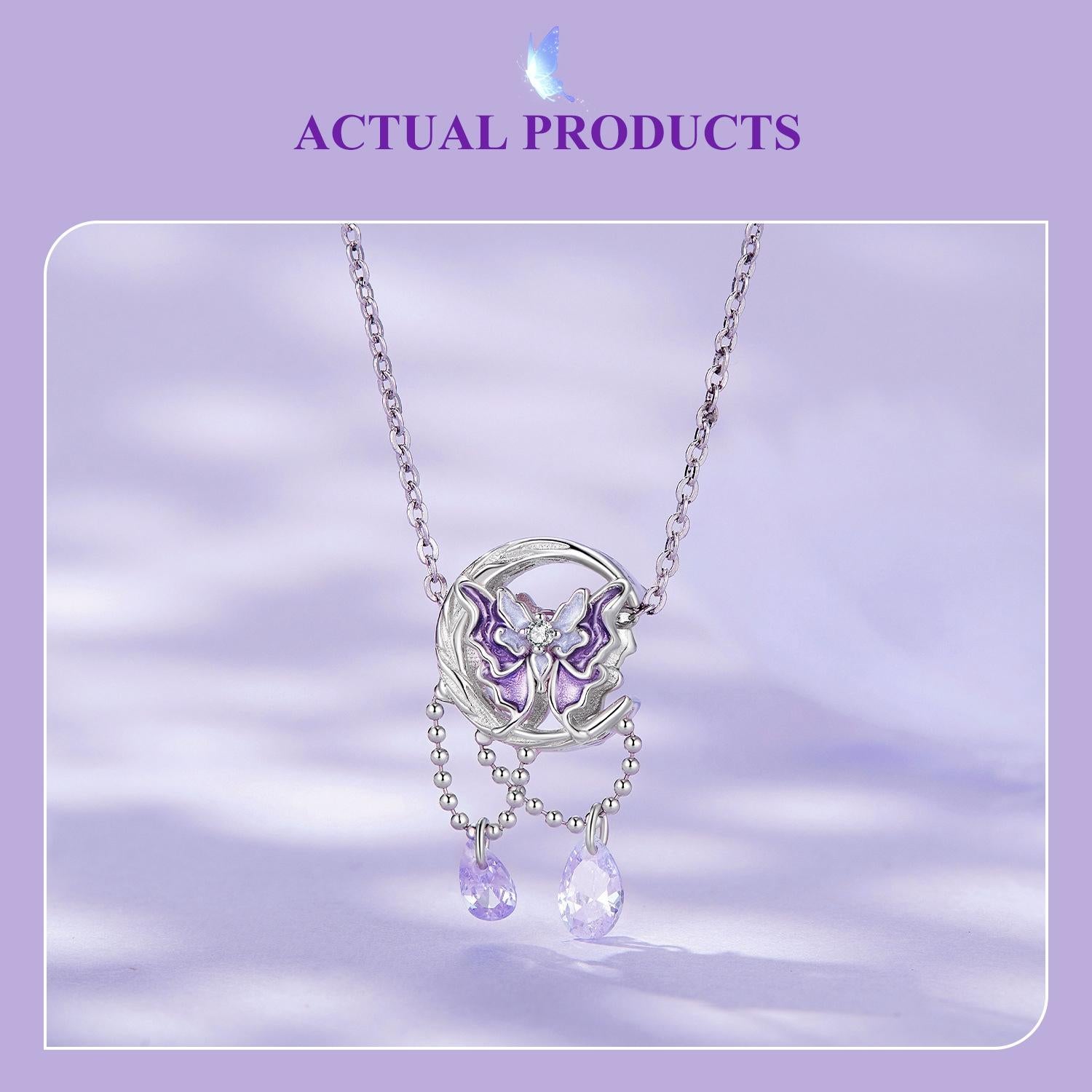 925 Sterling Silver Moon Butterfly Pendant Necklace