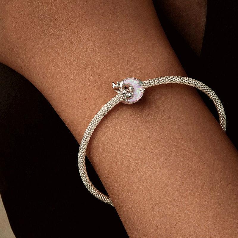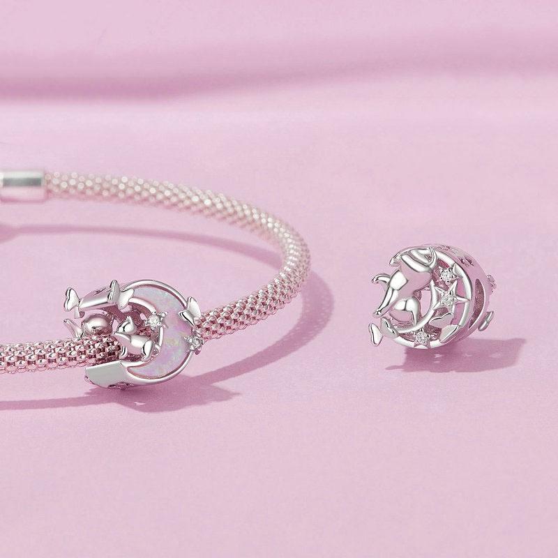• 1 x 925 Sterling Silver Opal Moon Cat Pendant In Plating