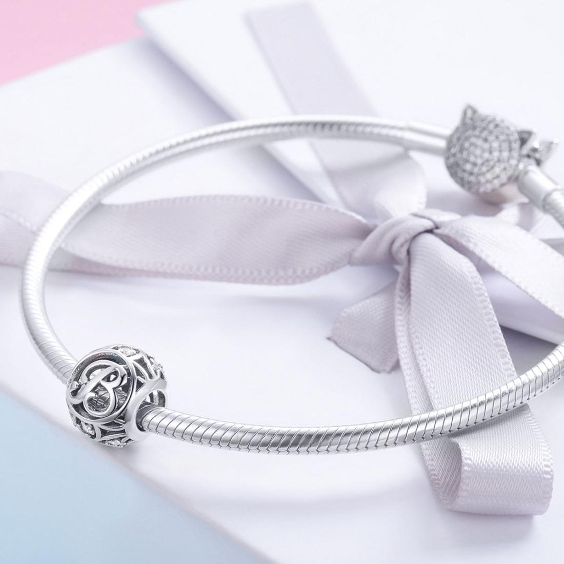 • 1 x 925 Sterling Silver Personalized Letter Beads For Diy Bracelets Necklaces Style - B