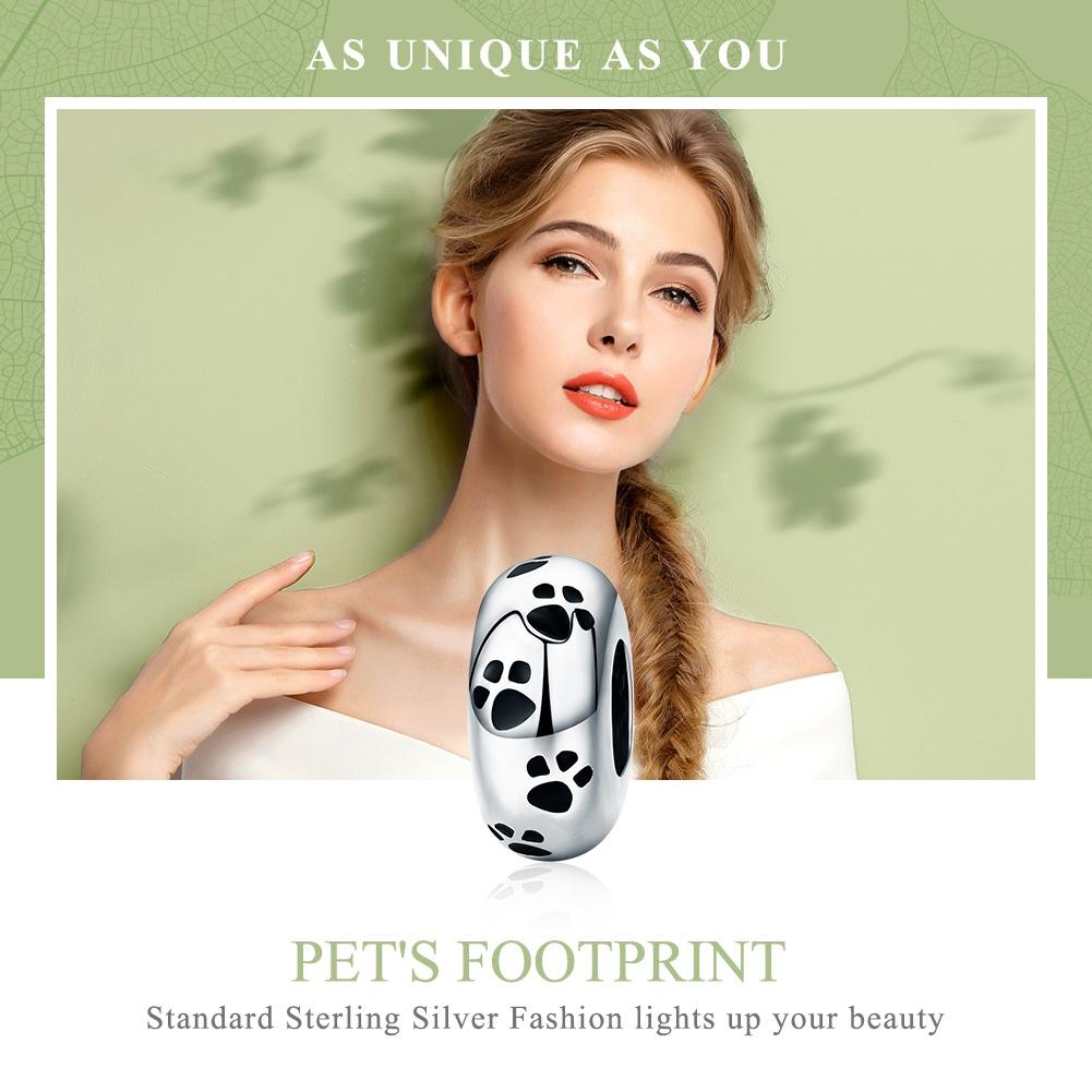 925 Sterling Silver Pet Imprint Diamond Bead Bracelet Accessory