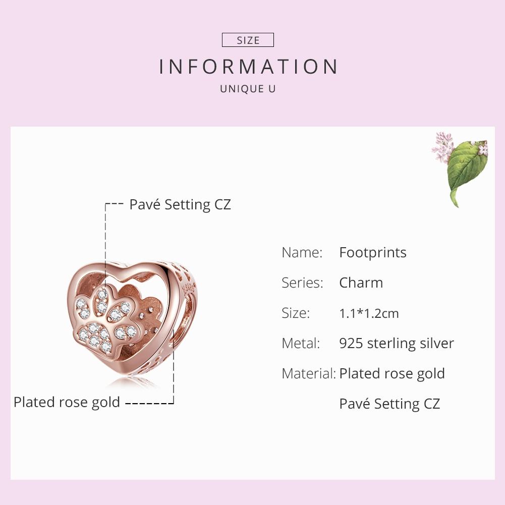 925 Sterling Silver Pet Paw Print Beaded Bracelet - Rose Gold