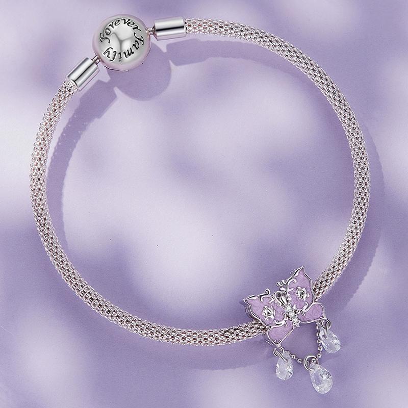 925 Sterling Silver Purple Butterfly Necklace Pendant For Diy Bracelets