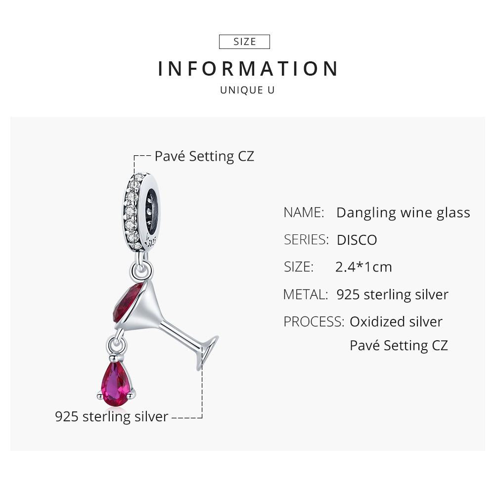 • 1 x 925 Sterling Silver Shimmering Wine Glass Pendant For Diy Bracelets Necklaces