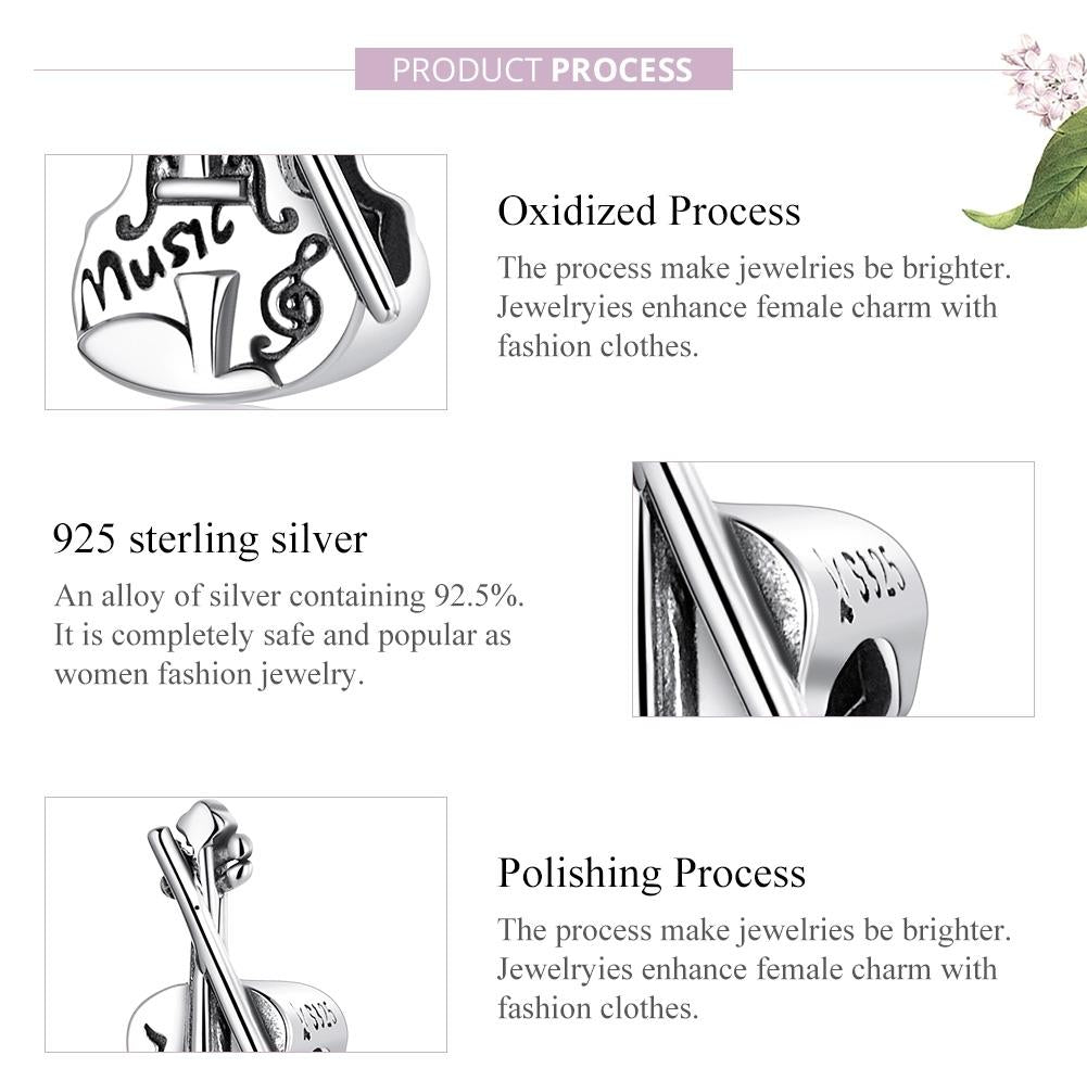 • 1 x 925 Sterling Silver Vintage Violin Beads For Diy Bracelets Necklaces