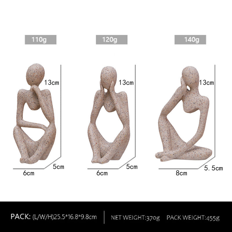 - Includes 3 abstract thinker sculptures with unique poses