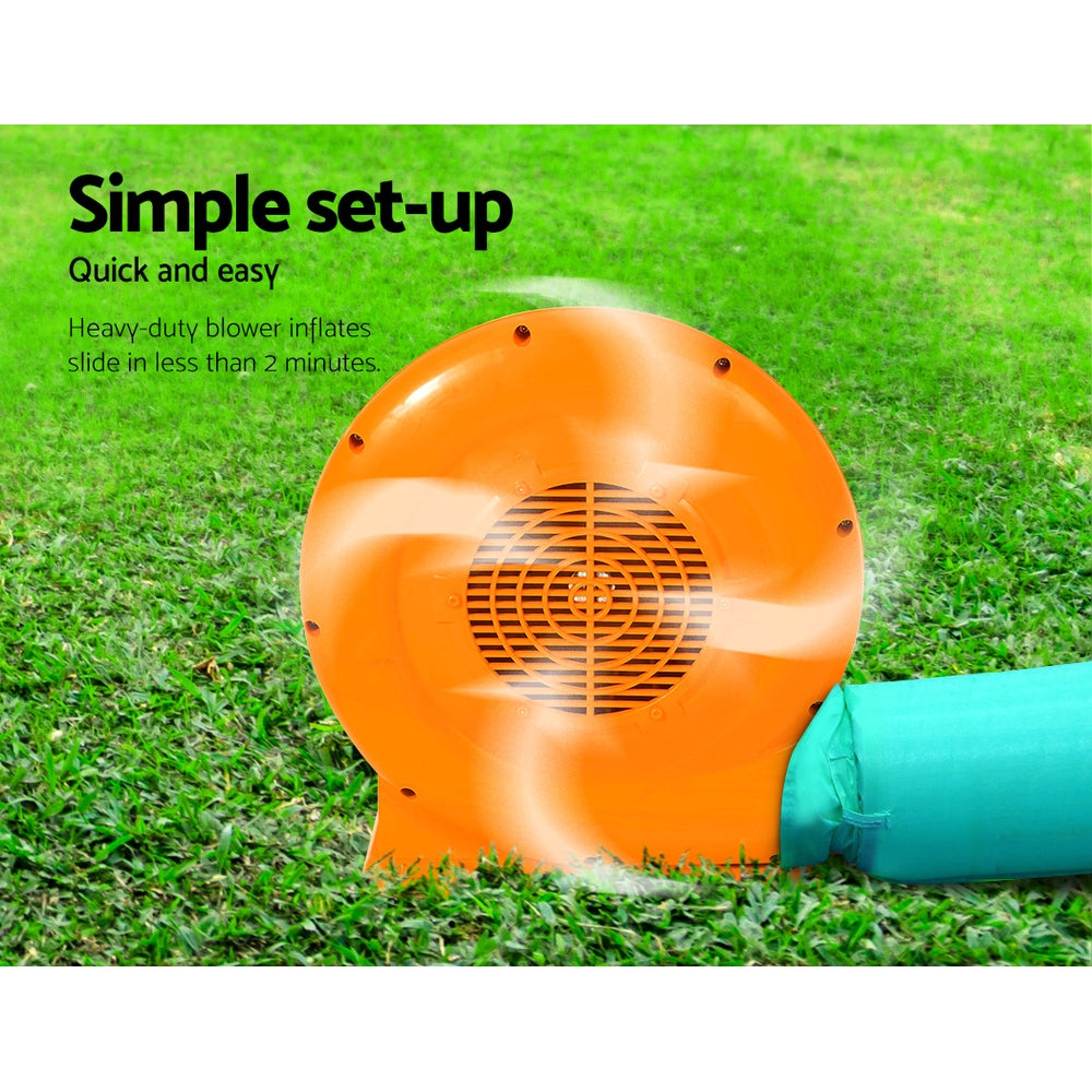 The heavy-duty blower inflates the water park in less than 2 minutes.
