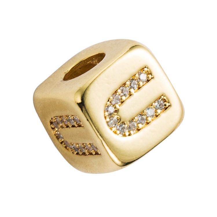• 1 x Brass Micro Inlaid Couple Red String Pull Diy Bracelet English Letter Beads Style - U