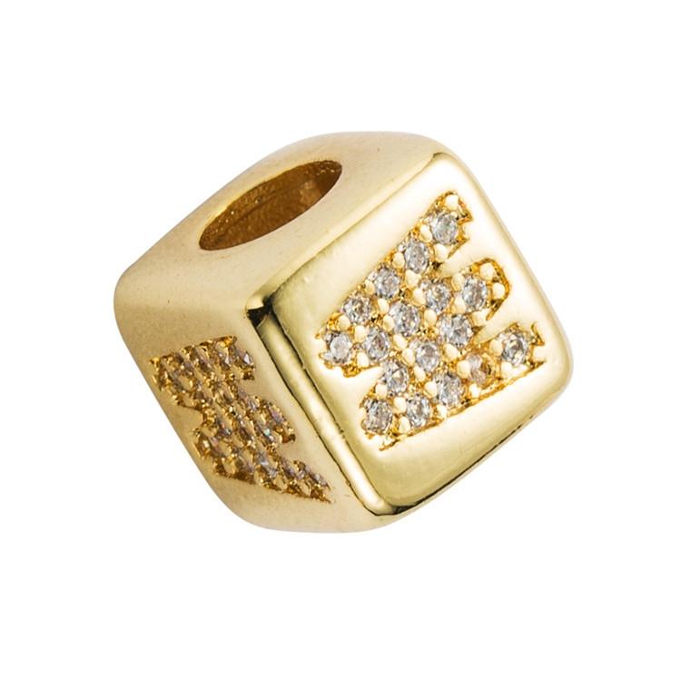 • 1 x Brass Micro Inlaid Couple Red String Pull Diy Bracelet English Letter Beads Style - W