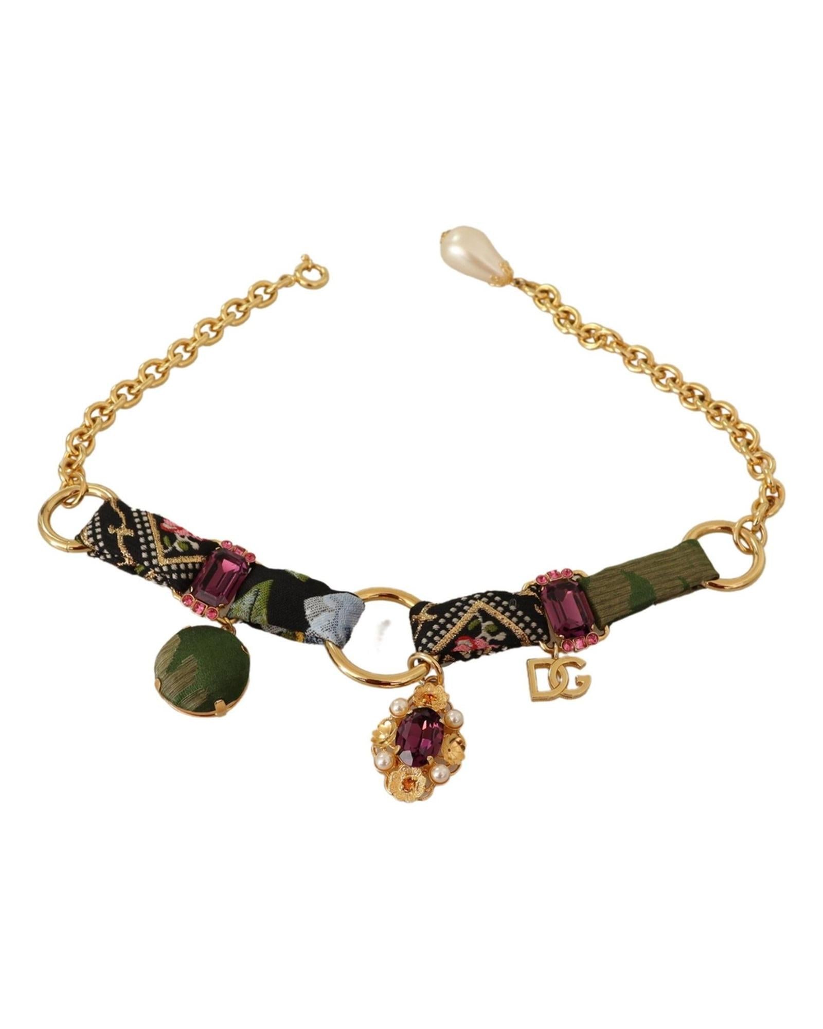 Dolce & Gabbana Charm Necklace with Multicolor Fabric and Crystal Inserts One Size Women