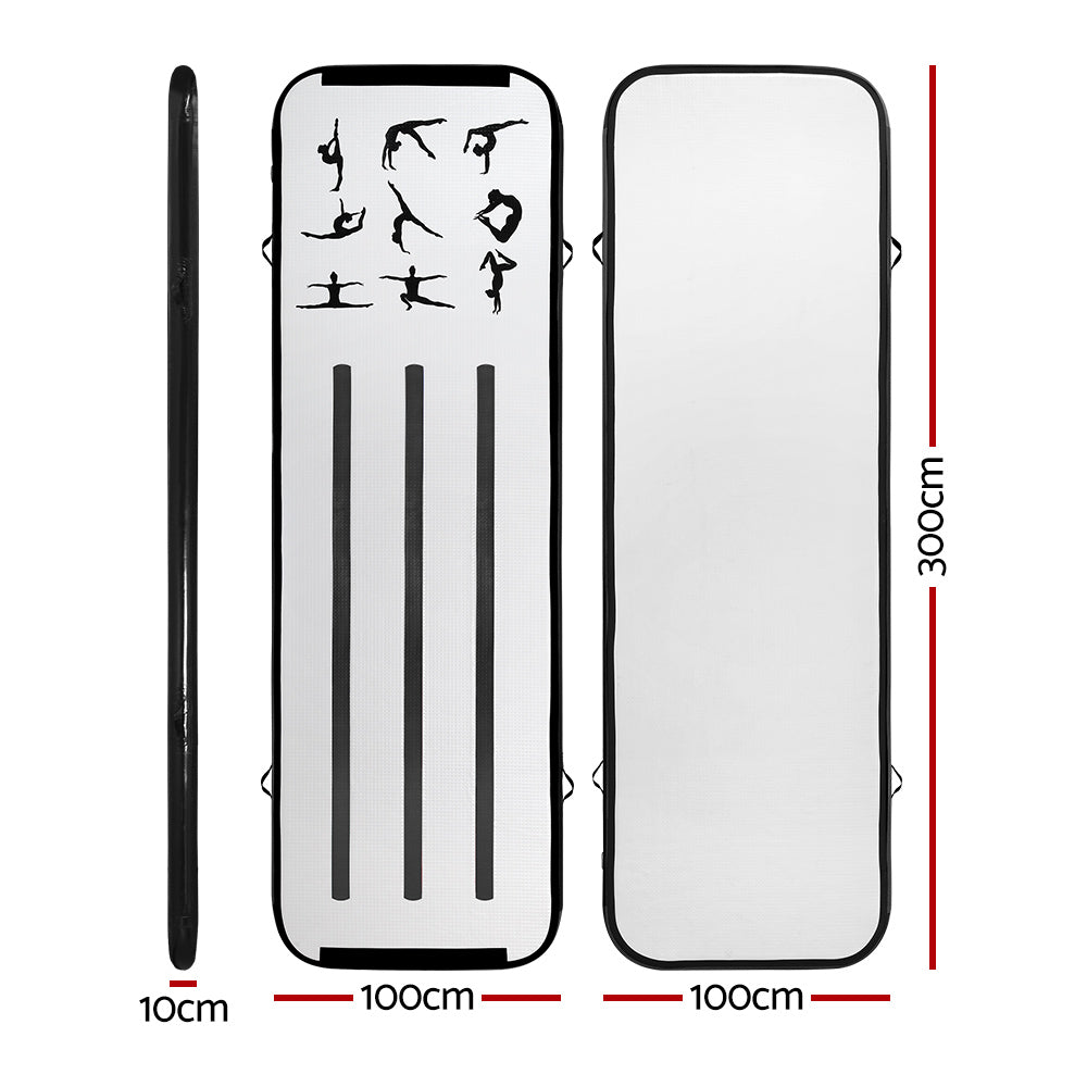 Everfit 3M Air Track Gymnastics Tumbling Mat Exercise Cheerleading Unique Black