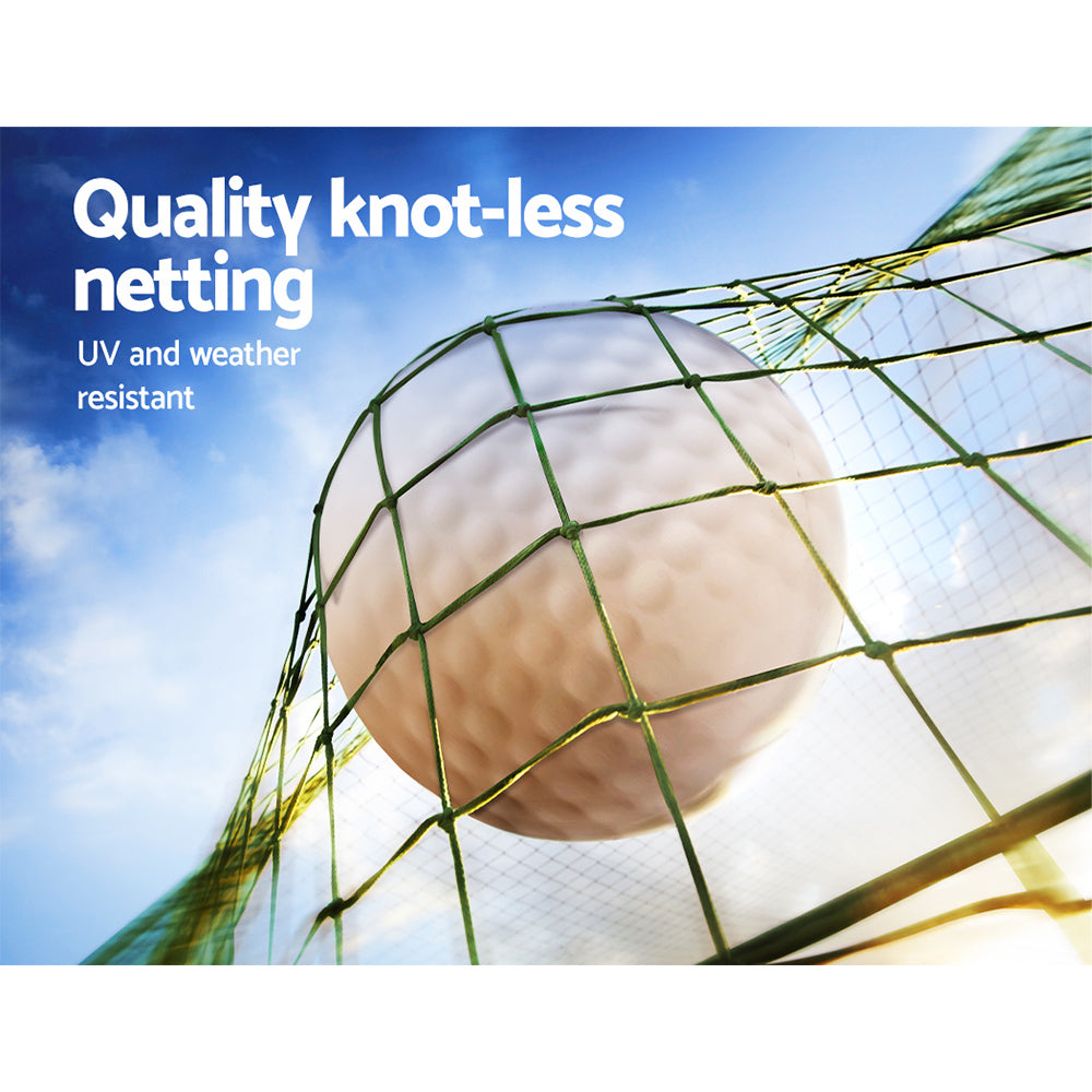 Practice your tennis swing in peace with an Everfit 3m Golf Practice Cage. The spacious cage is built for multipurpose use with sturdy knot-less netting on a strong steel frame construction with heavy duty tubes. Use it to practice golf, tennis, football, baseball or any sports that require precise aim. The cage is weather resistant and can be left outside all year round, or you can move it indoors for practice in the gym or playroom. Includes a free cloth with a target so you can practice your precise aim. It is easy to set up with our step-by-step guide, so you can put it together anywhere for a fun and sporty afternoon. Get your game on and enjoy fitness your way with an Everfit 3m Golf Practice Cage.