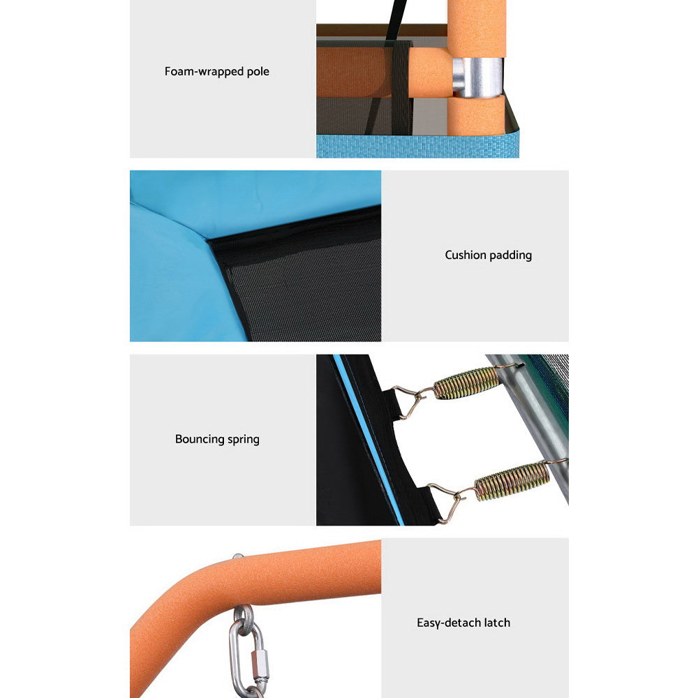 Foster your children's love of exercise with an Everft 6ft Trampoline. The trampoline is designed for children aged 3 to 8 years old and has a 2-in-1 design for double the fun: you can use it as a trampoline or as a jumping swing. Made from marine-grade hot-dip galvanized steel, the frame is incredibly strong and resistant to corrosion. The base is made from an anti-graze mat that is UV-resistant and is surrounded by cushioned padding. Posts are foam-wrapped for safety, and the entire trampoline is enclosed in a safe mesh netting with a zipped entrance. Heavy-duty ropes will hold your children as they jump and swing the day away. Your children can enjoy bouncing in safety and comfort any time with the Everfit 6ft Trampoline.