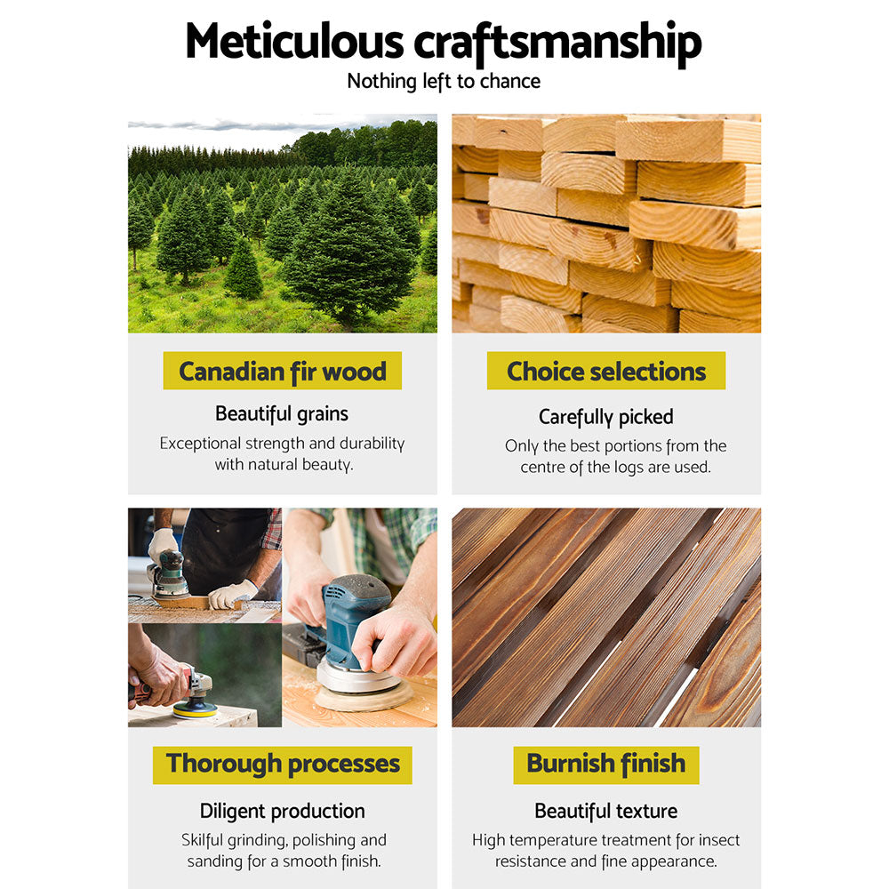 Enhance the look of your garden with our beautiful Gardeon wooden garden wheel. It makes an elegant upgrade. Featuring classic wheel design with spokes, our wooden garden wheel will provide both decorative and functional appeal. It’s crafted from solid fir wood with durable iron that helps you achieve a rustic look for your garden and ensures sturdiness and durability. The wooden wheel comes with four buckets with iron ring and strong and reliable fixings for a better hold, and the triangle-shaped base gives the wooden wheel extra strength, support, and stability and prevents tilting. Additionally, its solid construction makes the wheel sturdy and capable of handling weight. So rest assured that our garden wooden wheel will withstand the test of time. Our Gardeon wooden garden wheel also offers natural resistance to rot and pests, and its weatherproof design makes it ideal for outdoors. Shop our Gardeon wooden garden wheel to give to garden a rustic and classic look and feel.