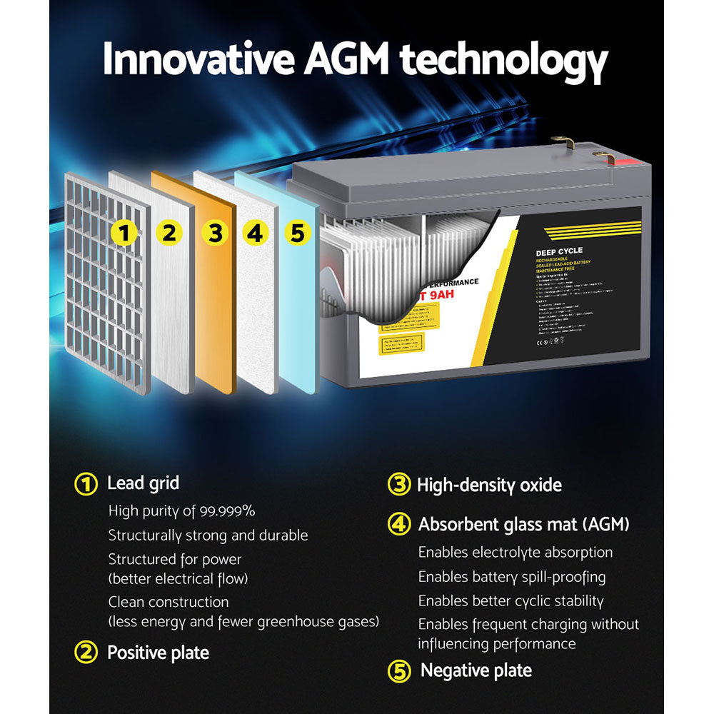 Giantz AGM Deep Cycle Battery 12V 9Ah Box Portable Solar Caravan Camping