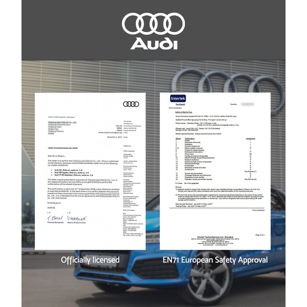 Let your little one experience the excitement of driving an Audi ride on car. The steering wheel and acceleration pedals to control the forward and reverse movement give your child control and a realistic driving experience. It comes with some cool entertaining features that will allow your child to have hours of fun. It includes a safety seat belt and a remote control for parent supervision, making it the ideal choice for parents who want a safe and fun way for their children to explore their environment. The licensed Audi ride on car is the perfect gift for any young car enthusiast.