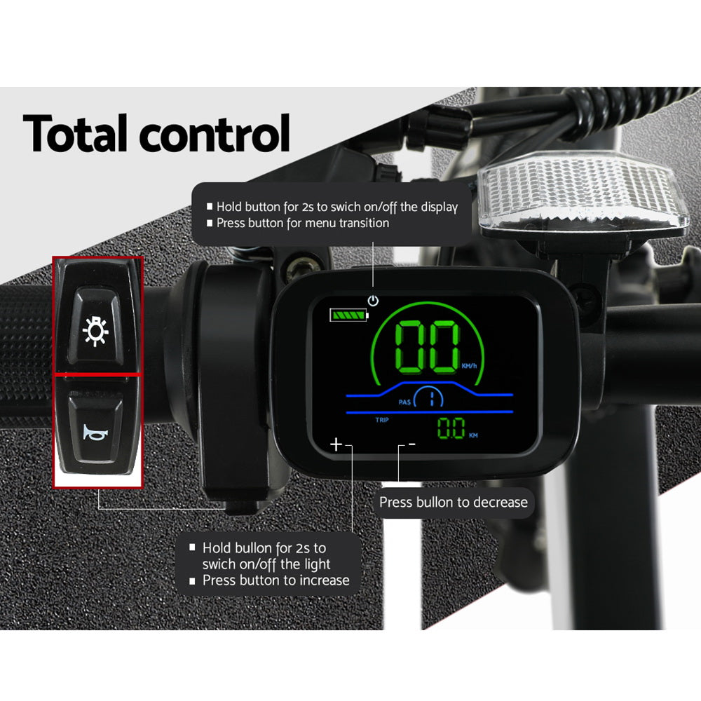 Have you been looking for a more sustainable way to get around? Or do you want more freedom to enjoy the great outdoors? Take your fitness to the next level and find a unique solution to your daily commute with the Phoenix 20" Electric Urban Bike. With its powerful Hi-Torque 250W motor and built-in 36V 10.4Ah Li-ion battery, the Phoenix Electric Bike can ride up to 40 km on a single charge and reach speeds of 25 km an hour. The bike is made from premium parts such as the Shimano 7-speed gear system and derailleur and features a quick-folding design so you can take it with you anywhere, from road trips to your daily commute. You'll find it easy to ride a wide range of terrains from the mountains to the suburbs, and you'll be able to do it in safety and comfort with the durable wheels and tyres, aluminium frame, dual front and back brakes, a front suspension fork and a comfortable saddle for the perfect ride. Features a front light and reflector for added safety during your evening ride, and a clear LCD display panel for total control at all times. Your package includes two wrenches, three hexagonal wrenches, a bolt driver and a security key for easy installation and maintenance. Forget driving a bulky car around the city or in the country – enjoy a more sustainable and healthier ride with a Phoenix 20" Electric Urban Bike.