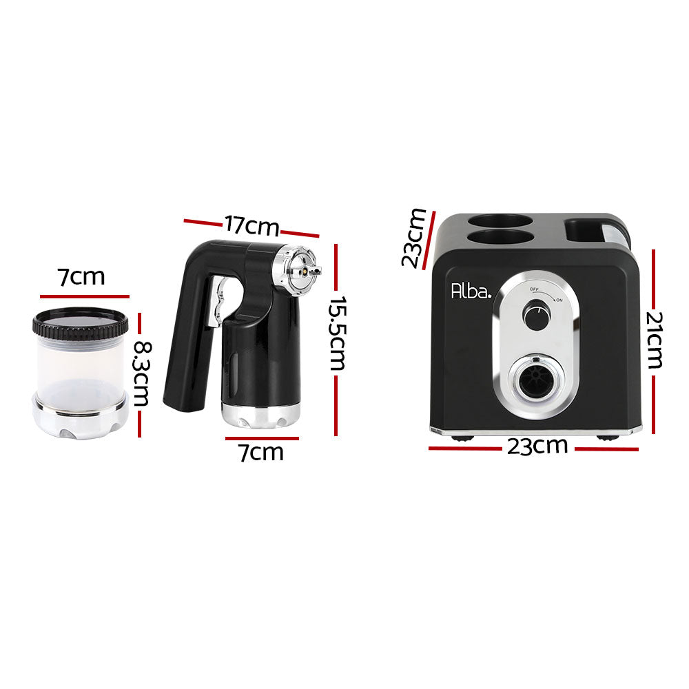 Featuring a quality built silent motor with an advanced flawless spray gun; this 500W Alba Spray Tan Gun Machine is the prefect tanning device for you. With built-in heat function that a constant warm air will automatically on once you switch on the machine; keeping you warm for winter applications and helps the solution to dry faster. With adjustable speed setting and easy function buttons, this machine is designed to give you the finish you want.