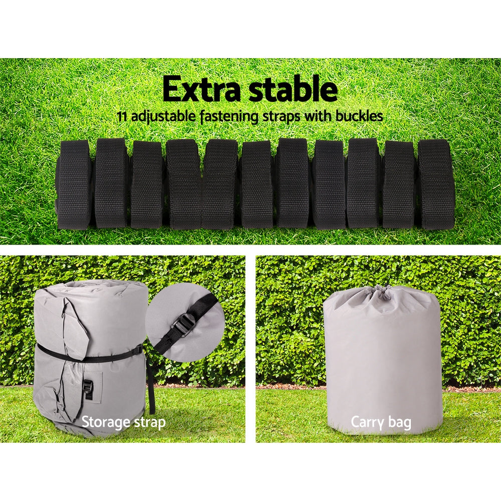 The Cover is made of 600D polyester with PU coating for effective UV and mildew resistance. It also features elastic hems for easy fitting and double-stitched seams for added strength.
